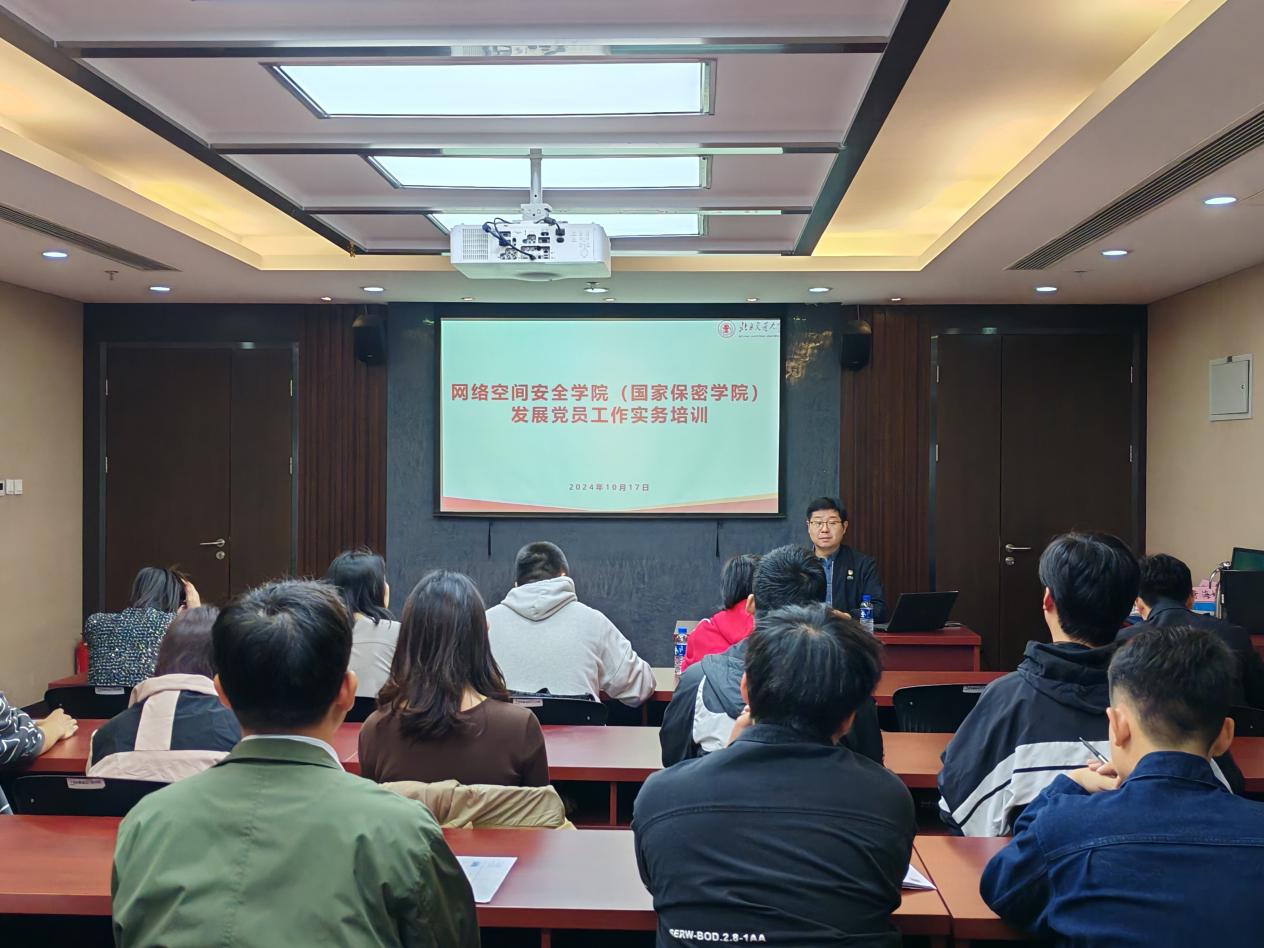 网络空间安全学院(国家保密学院)党委10月17日,根据学校党委组织部关于做好发展党员工作实务培训的通知要求,组织全体师生党支部书记、组织委员、培养联系人和入党介绍人进行集中培训。
