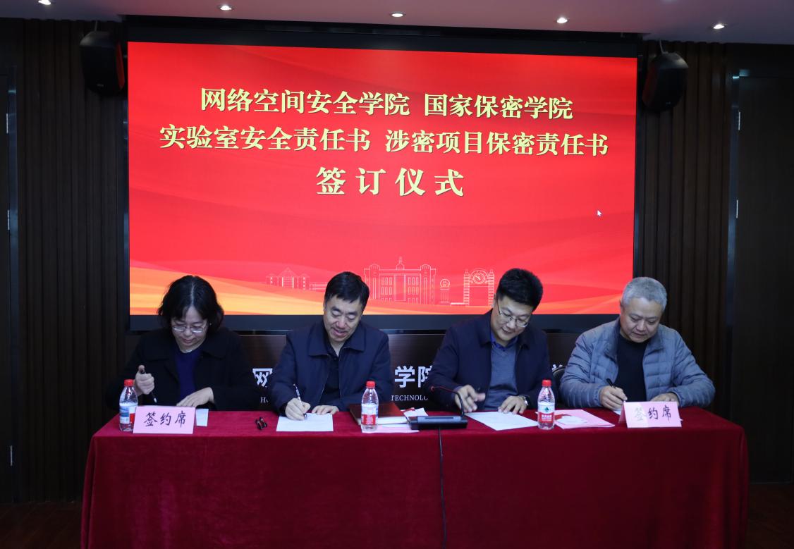 在安全保密责任书签订环节,实验室安全责任人、涉密项目负责人分别与学院主要负责人郑重签订了实验室安全责任书和涉密项目保密责任书。通过签订责任书,进一步明确了各方在安全管理和保密工作中的具体职责,强化了责任意识和担当精神。