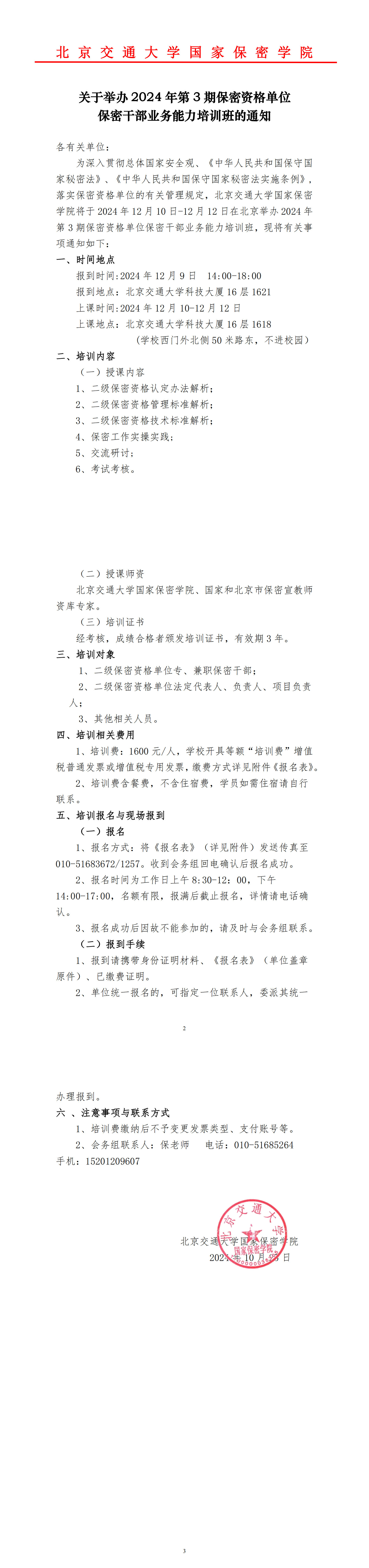 关于举办2024年第3期保密干部业务能力培训班的通知