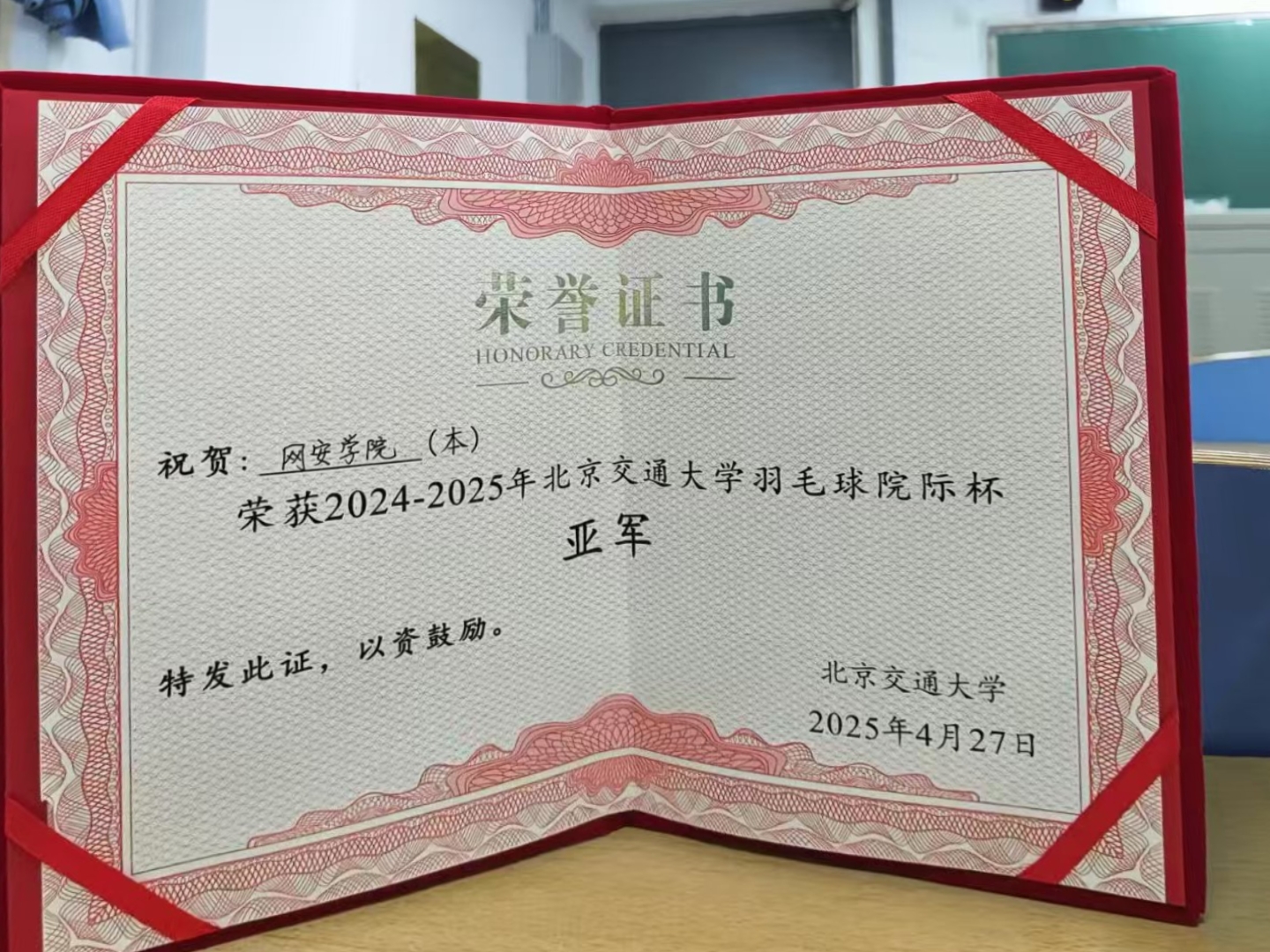 为了丰富同学们的课余生活,培养永争第一的体育精神,增强学院凝聚力,促进同学之间的合作交流,2025年4月21日-27日,我院学生羽毛球队参加北京交通大学羽毛球院际杯赛事决赛并取得优异成绩。