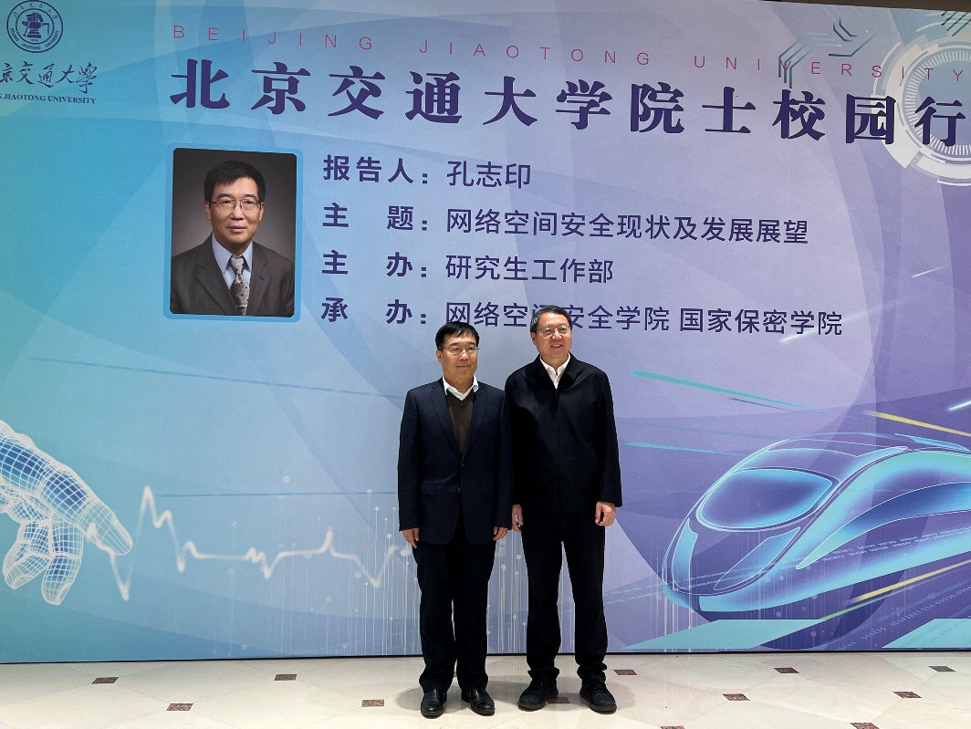 在专题报告中,孔志印院士以“网络空间安全现状及发展展望”为题,围绕从通信保密到网络空间安全的演进历程、当前网络空间安全攻防态势研判、网络空间安全困局及制胜之道的思考三个方面,对当下网络空间安全面临的现状以及未来的发展方向进行了系统介绍。报告结束后,孔志印院士和与会师生进行了互动交流,对同学们的疑问进行了一一解答,鼓励同学们努力学习,刻苦钻研,为国家网络空间安全事业贡献青春力量。