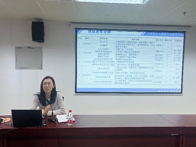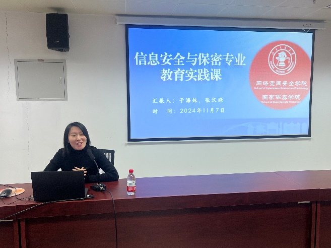 学工办主任于海妹和综合办张汉姝介绍综合素质培养之信息安全与保密专业教育实践课程情况。学院将持续做好信息安全与保密专业教育实践课程建设,从知专业、爱专业角度出发,通过“理论+实践”多环节活动的开展,培养新时代全面发展的信息安全和保密专业人才。