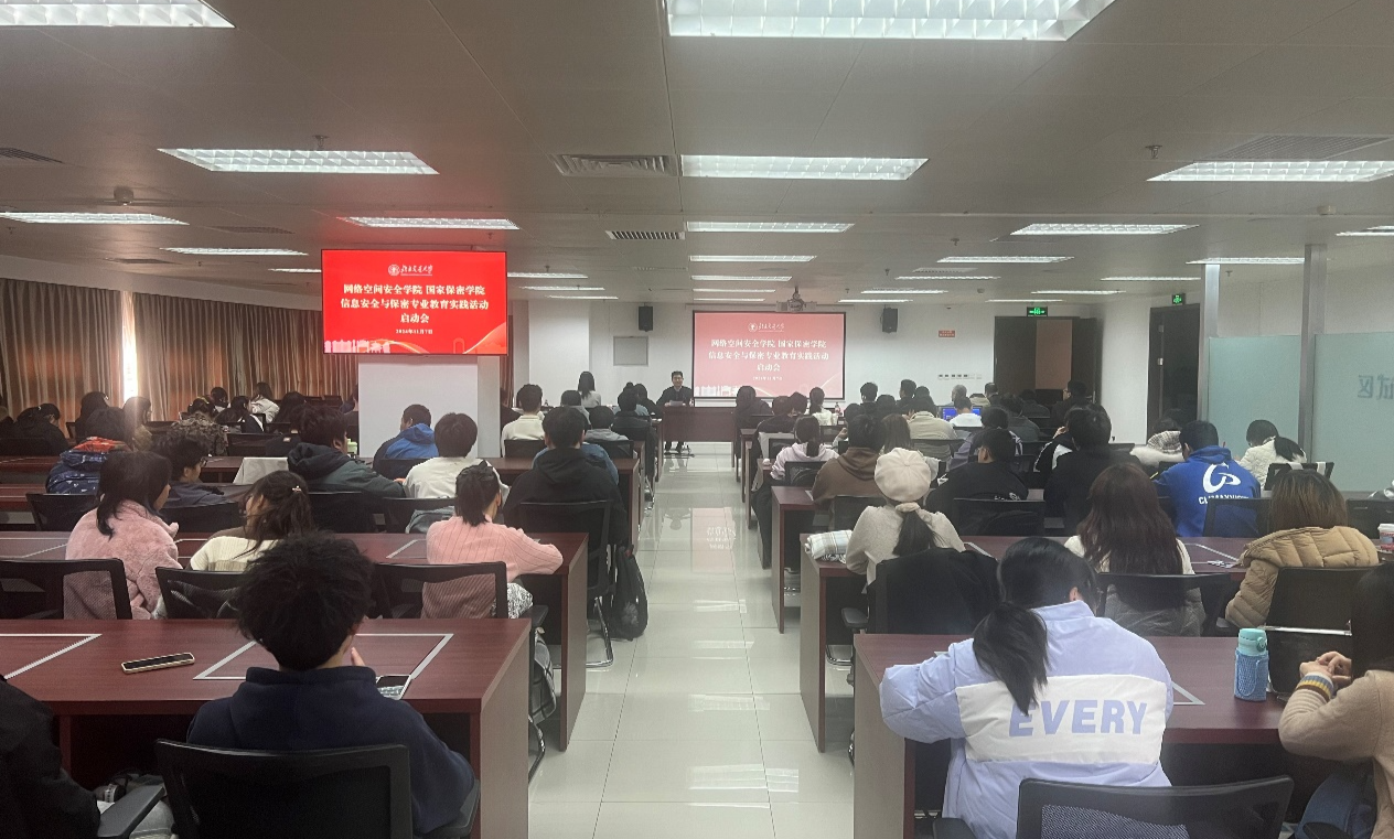 11月7日下午,网络空间安全学院(国家保密学院)在科技大厦召开学院2024年信息安全与保密专业教育实践活动启动会。学院党委书记、国家保密学院常务副院长杜晔,党委副书记、副院长安志强,信息安全系负责人王健,信息管理系主任谢祥,学院综合办、学工办、团委负责教师和信息安全、保密技术、保密管理专业2023级本科生,“保密管理+保密技术”双学位专业2024级本科生参加大会。会议由安志强主持。