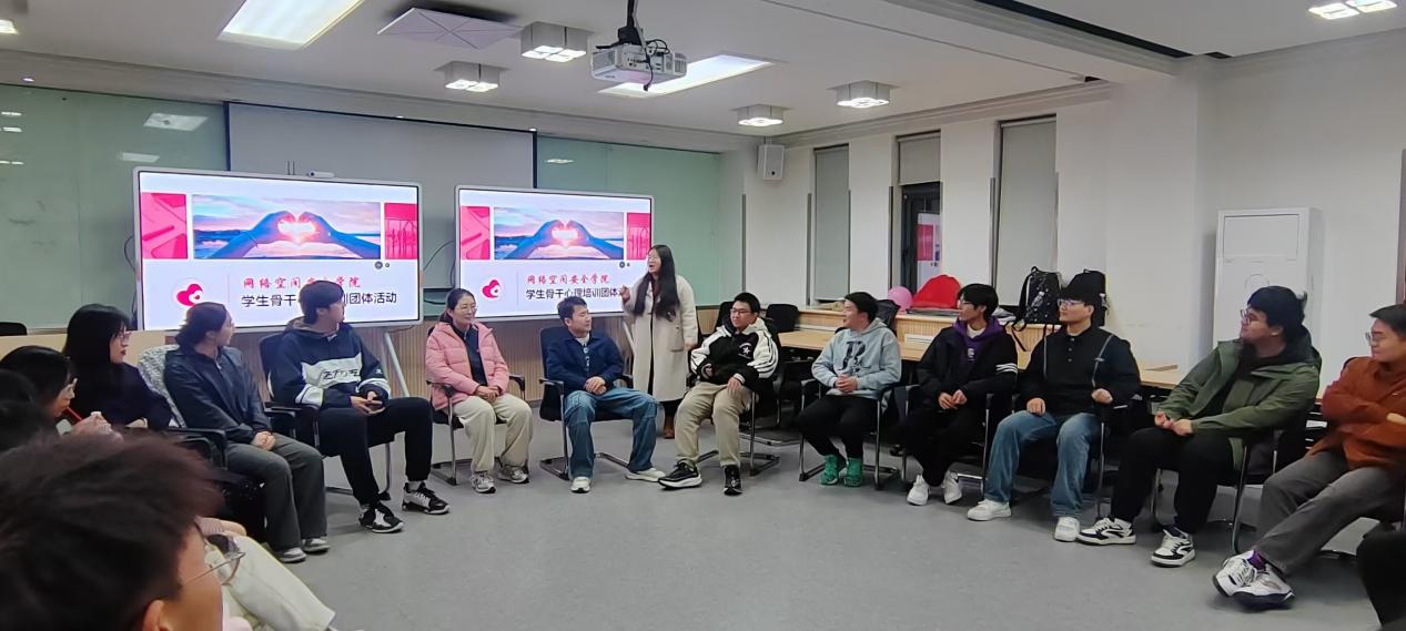 为进一步加强学院心理健康教育工作建设,提升学院学生骨干对心理健康的认识与理解,培养新时代学生心理骨干队伍,网络空间安全学院联合心理素质教育中心于11月6日开展学生骨干心理培训团体活动。本次活动由崔若冰带领,全体本研学生骨干参与。