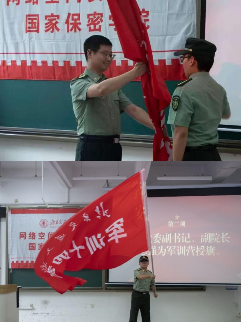 学院党委副书记、副院长安志强向带训教导员齐彤旭郑重授旗。