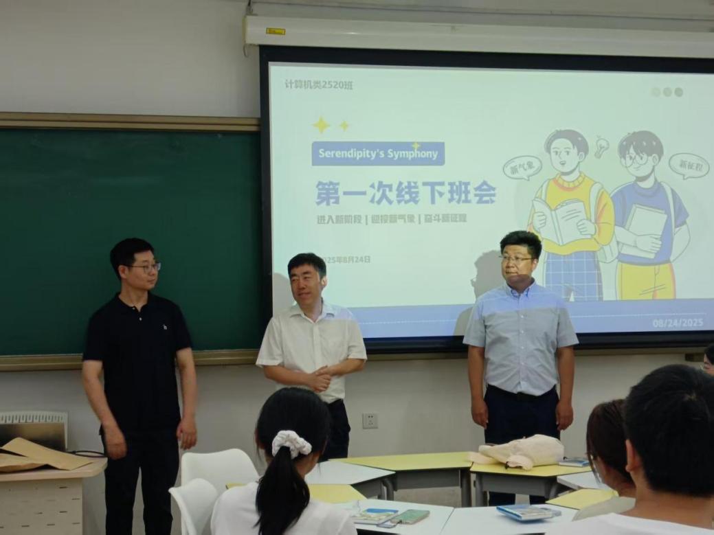 当晚,学院领导班子分组前往各班级班会现场,与新生进行交流,勉励大家珍惜大学时光、树立远大理想、践行“知行”校训,努力成长为网络安全与保密领域的专业人才。班主任及班助就大学生活、专业特色、发展路径等内容作了具体介绍,引导新生做好学业与职业规划。