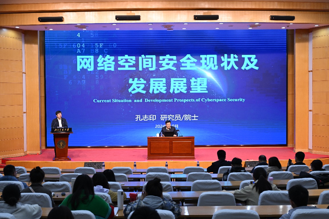 2024年10月30日上午,由研究生工作部主办,网络空间安全学院(国家保密学院)承办的院士校园行活动于科学会堂举办。中国工程院孔志印院士作了题为“网络空间安全现状及发展展望”的精彩报告。学校一百余名师生参与本次活动。
